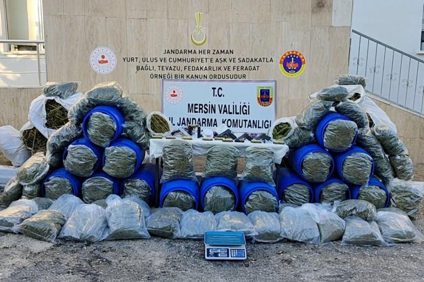 Mersin’de uyuşturucu satıcılarına yönelik düzenlenen eş zamanlı jandarma operasyonunda yüzlerce kilo esrar, kokain, sentetik hap ve 5 tabanca ele geçirildi. Operasyonda 4 şüpheli gözaltına alınırken, 3’ü tutuklandı.