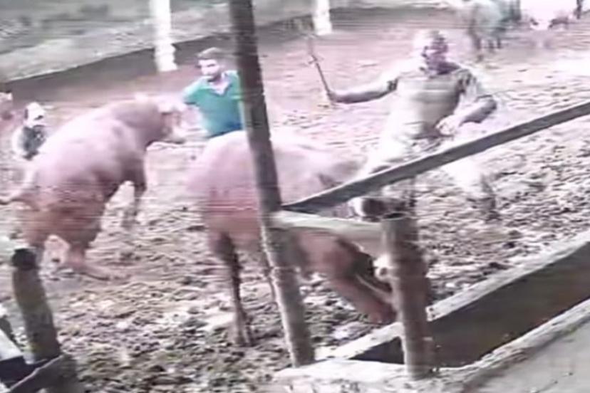Amasya’da bir çiftlikte besici üzerine zıplayan boğanın darbesiyle yere serildi. O anlar kameraya yansıdı.