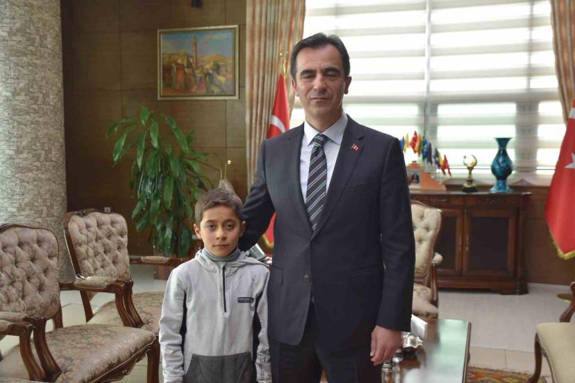 Bitlis Valisi Ahmet Karakaya, etkili olan yoğun kar yağışına rağmen okul bahçesinde okunan İstiklal Marşı’na coşkuyla eşlik eden öğrenciyi makamında kabul ederek teşekkür etti.