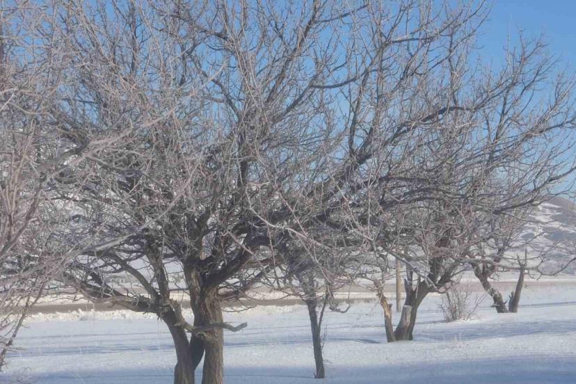 Van’da dondurucu soğuklar, tabiatı adeta beyaz bir örtüyle süslerken, gece hava sıcaklığının gece sıfırın altında düşmesiyle ağaçlar kırağı tuttu.