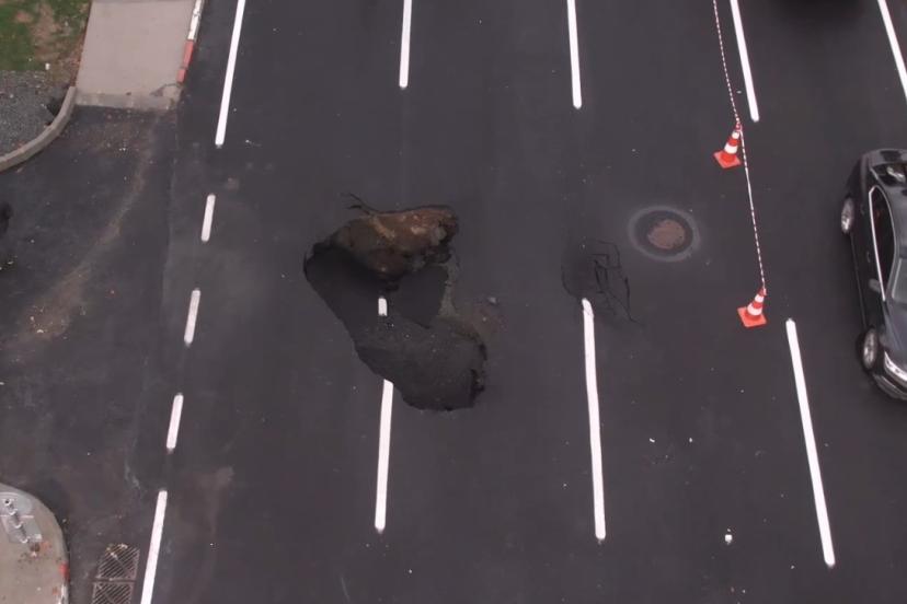 Vatan Caddesi’nde oluşan çukur havadan görüntülendi