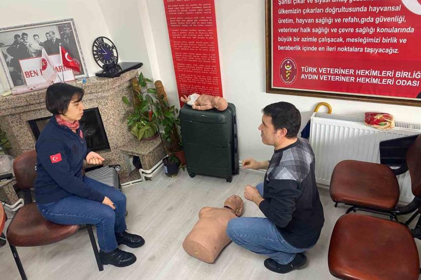 Aydın’da veteriner hekimlere yönelik düzenlenen ilk yardım güncelleme eğitiminde, sertifikalı veteriner hekimler acil sağlık uygulamalarına ilişkin bilgilerini tazeledi.