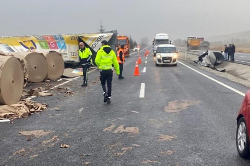 Yaban hayvanı kazaya yol açtı: Devrilen tırın üzerindeki demir plaka başka bir tıra çarptı