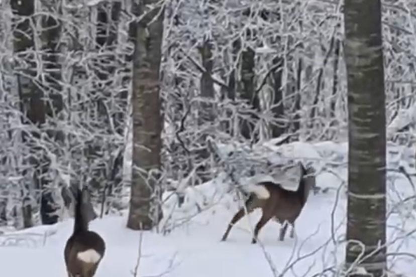 Görüntülerde, vatandaşın seslendiği geyiklerin bir süre sonra ormanlık alana girerek gözden kaybolduğu yer alıyor.
