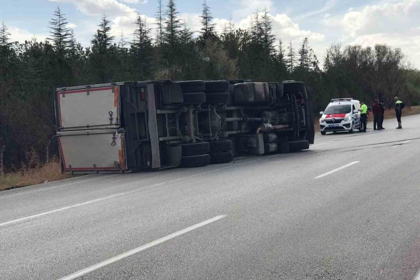 Konya’nın Ereğli ilçesinde yağ yüklü kamyon kontrolden çıkarak devrildi. Kazada kamyon sürücüsü yaralandı.
