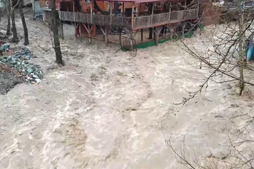 Kayseri’nin Yahyalı ilçesinde etkili olan yağışların ardından dere yatağında taşkınlar meydana geldi.