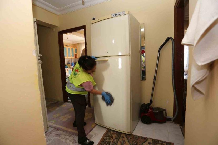Kepez Belediyesi, Evde Sağlık Hizmetleri kapsamında Varsak Karşıyaka Mahallesi’nde yalnız yaşayan 80 yaşındaki Fatma Yamacı’nın evini temizledi.