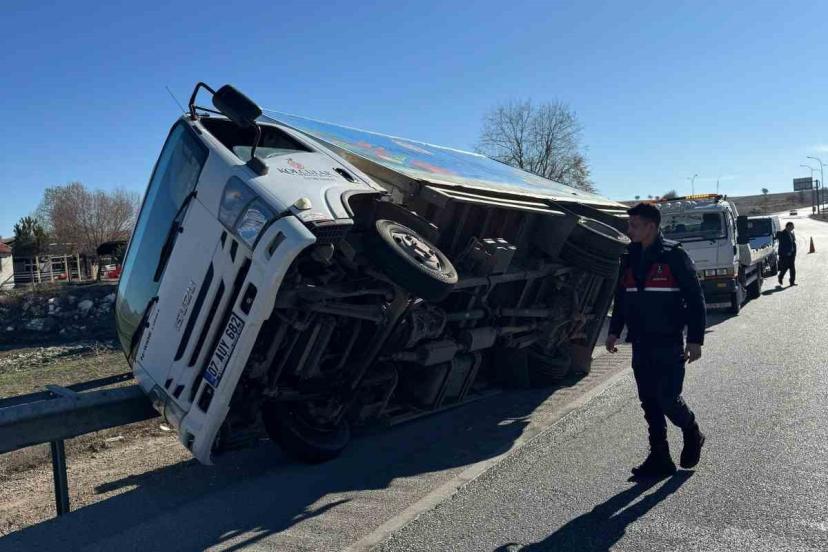 Kaza, Kızılören Kavşağında meydana geldi. Edinilen bilgilere göre, 07 AUY 682 plakalı kamyon henüz belirlenemeyen bir nedenle sürücünün direksiyon hakimiyetini kaybetmesi sonucu kontrolden çıktı. Savrulan araç ardından yol kenarındaki refüje girip yan yatarak durdu. Kazada araç içerisinde bulunan ve isimleri öğrenilemeyen iki kişi yaralandı. Yaralılar kaza sonrası çevredekilerin haber vermesi üzerine olay yerine gelen ambulanslarla hastanelere kaldırıldı.