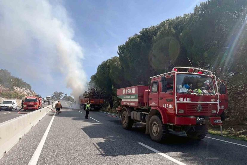 Muğla’nın Sakar Rampası bölgesinde orman yangınlarını önlemek amacıyla yapılan temizlik çalışması haberinin üzerinden bir saat geçmeden odun yüklü bir tırda yangın çıktı.