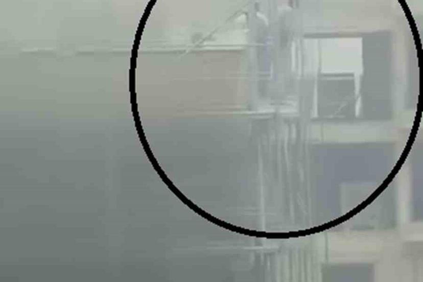 Hatay’da inşaat alanında çıkan yangına iskelede yakalanan işçilerin korku dolu anları kameraya yansıdı.