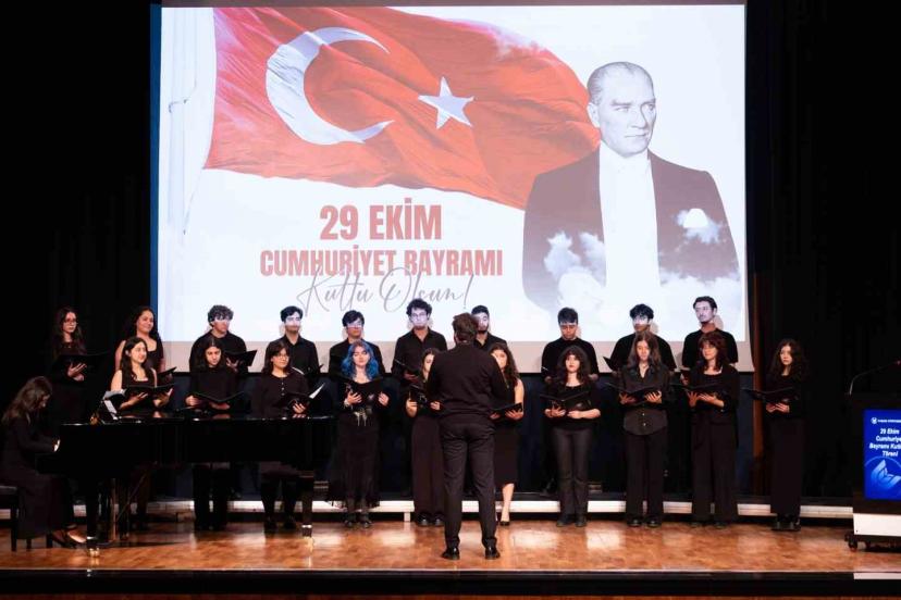 Etkinlik, Yaşar Üniversitesi Müzik Bölümü Korosu’nun dinletisiyle devam etti; izleyiciler, ellerindeki Türk bayraklarını sallayarak şarkılara eşlik etti.