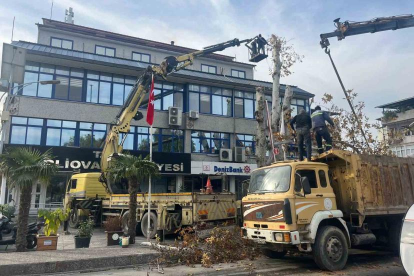 Aydın’ın İncirliova ilçesinde bulunan tarihi çınar ağacının devrilme riski taşıması nedeniyle belediye ekipleri tarafından budaması gerçekleştirildi.