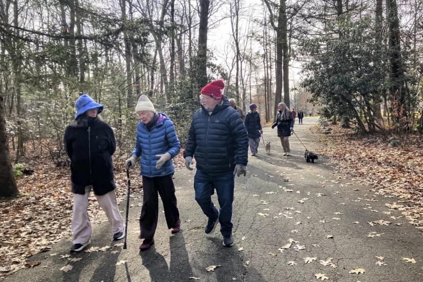 Shelly Bathe Lenn, yürüyüşe başlamadan önce bir park bankının yanında daire şeklinde toplanan yürüyüşçülere, "Burası bir egzersiz grubu değil," diye uyarıyor. "Arkanızdakiler için yavaşlayın."