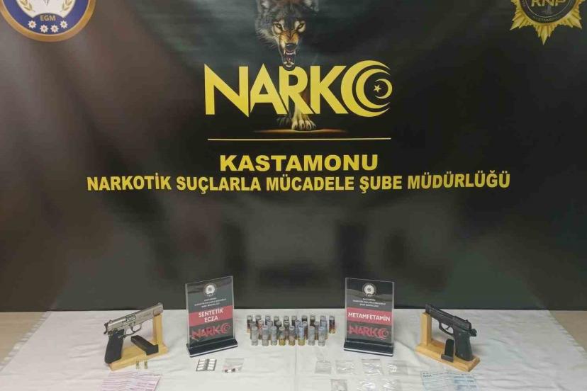 Kastamonu’nun Kuzeykent Mahallesi’nde 21 Ekim 2024 tarihinde İl Emniyet Müdürlüğü ekiplerince uyuşturucu madde kullanan ve satan şahısların yakalanmasına yönelik yürüttüğü çalışmalar neticesinde Narkotik Suçlarla Mücadele Şube Müdürlüğü ekipleri tarafından arama yapıldı. Toplam 6 şahsın yapılan üst, araç ve ikamet aramasında çeşitli miktarlarda uyuşturucu madde, 2 adet tabanca, tüfek kartuşları ve 13 bin 800 lira nakit para ele geçirildi. Yatağın altına sakladığı uyuşturucuyla yakalanan H.Ç. isimli şahıs, tutuklanarak ceza infaz kurumuna teslim edildi.