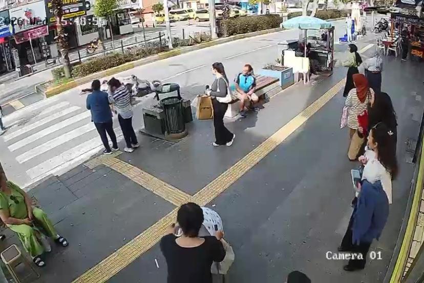 Çarpmanın şiddetiyle yola savrulan anne ve kızının yardımına çevredeki vatandaşlar koşarken, kendisi de yola savrulan motosiklet sürücüsü ayağa kalktıktan sonra çevredekilerin şaşkın bakışları altında motosikletine binerek olay yerinden uzaklaştı. Kazada yaralanan anne ve kızı 112 sağlık ekiplerinin olay yerindeki müdahalesinin ardından ambulansla hastaneye kaldırılırken hayati tehlikelerinin bulunmadığı bildirildi.