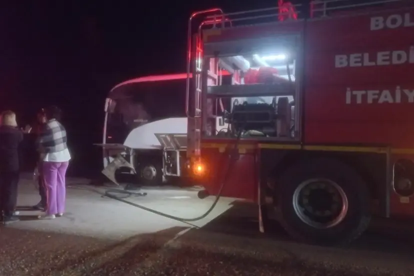 Bolu’nun Yedigöller Milli Parkı yolunda seyir halindeyken motor kısmı alev alan yolcu otobüsünde, rehber Ahmet Alkan’ın hızlı müdahalesi olası bir faciayı önledi.