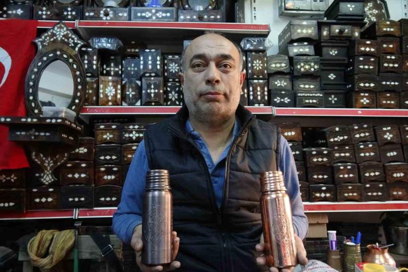 Ahşap kaplamalı dükkanları, taş döşenmiş sokakları ile yerli ve yabancı turistlerin uğrak mekanı olan ve yüzyıllardır hiç boş kalmayan tarihi Bakırcılar Çarşısı’nda bu yılın en gözde bakır ürünlerinden biri olan bakır su mataraları büyük rağbet görüyor.