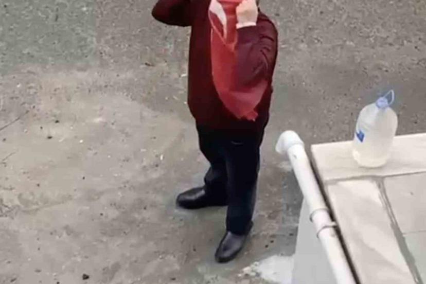 Tekirdağ’ın Kapaklı ilçesinde bir vatandaş, yerde bulduğu Türk bayrağını temizleyip öperek yerine astı.