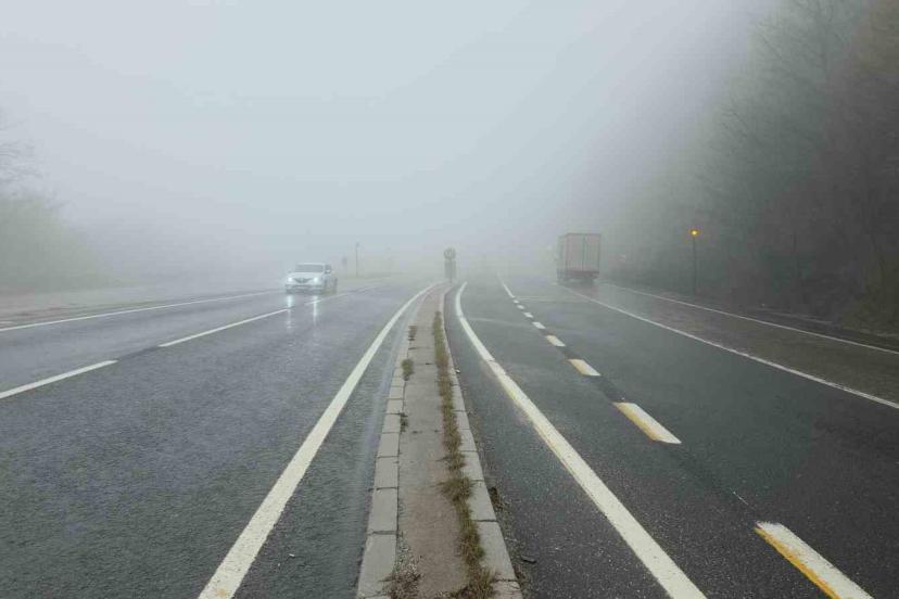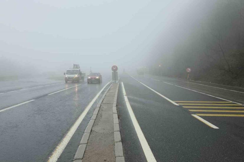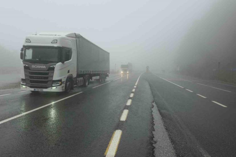 Karayolları ekipleri de yol kenarlarında bulunan sis lambalarını yakarak görüş mesafesine yardımcı oluyor.