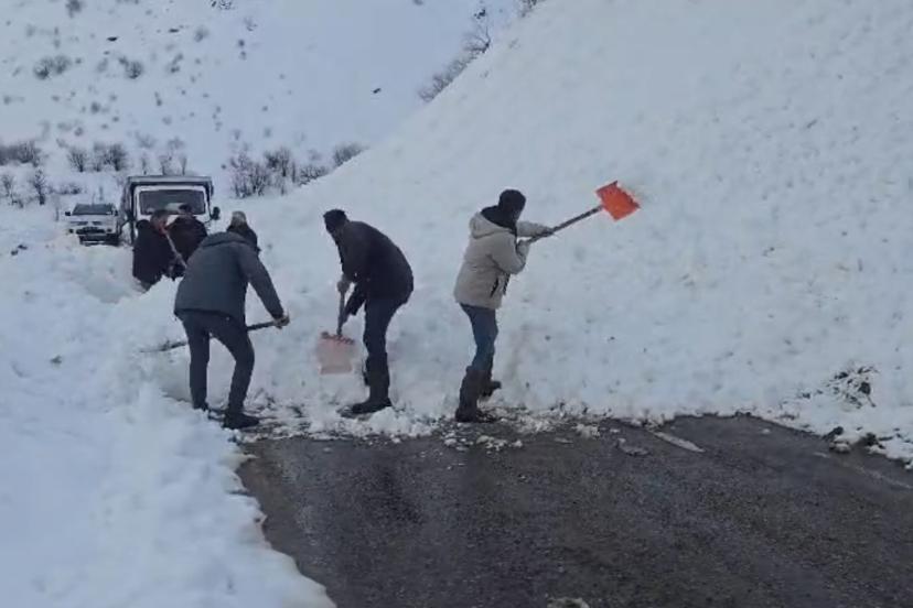 Yola düşen çığı vatandaşlar küreklerle kaldırdı