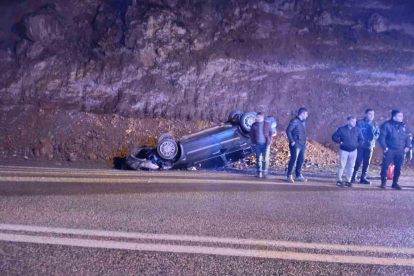 Yola düşen kayalardan kaçan otomobil takla attı: 2 yaralı
