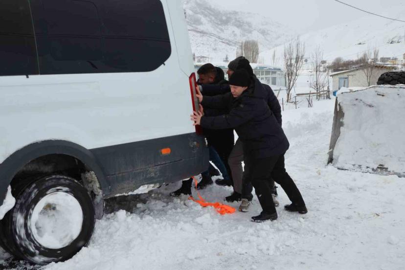 Bitlis’in Tatvan ilçesinde yoğun kar yağışı nedeniyle kapanan köy yollarında mahsur kalanların imdadına Tatvan Kaymakamı Yiğit Yaşar Demirer yetişti.
