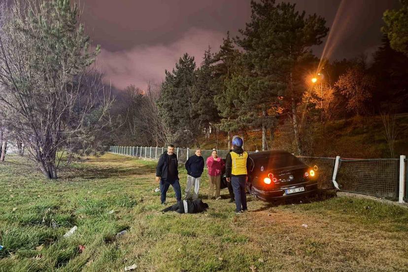 Eskişehir’de yoldan çıkan otomobil, su kanalının korkuluklarına çarparak durabildi.