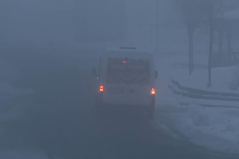 Hakkari’nin Yüksekova ilçesinde etkili olan yoğun sis nedeniyle adeta göz gözü görmüyor.