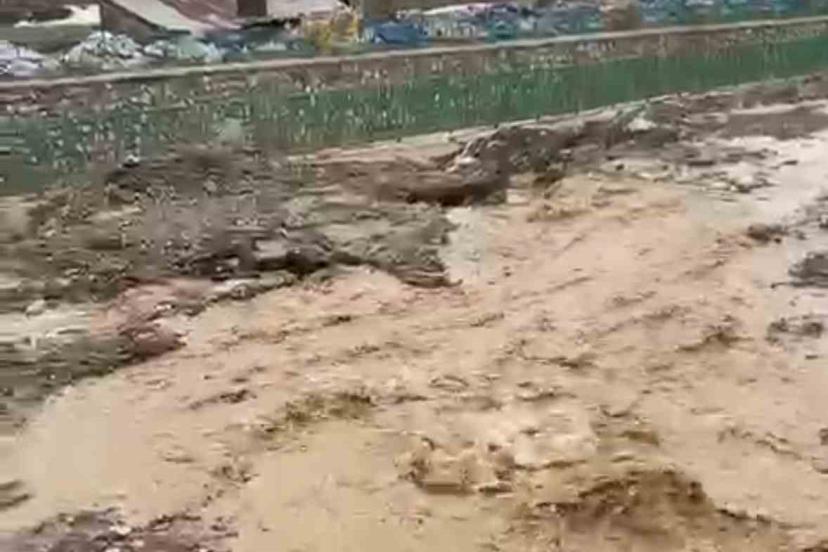 Hakkari’nin Yüksekova ilçesinde şiddetli sağanak ve karların erimesi sonucu debisi yükselen derenin kenarındaki istinat duvarı çöktü.