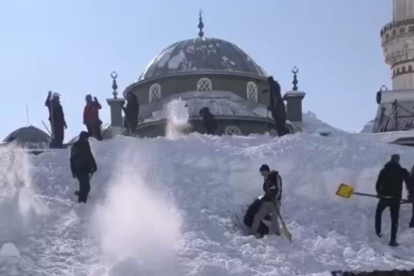 Yüksekova’da kar altında kalan cami ve evler imece usulü temizlendi