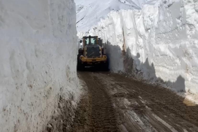 Yüksekova ilçesinde Nisan ayında karla mücadele çalışmaları yoğun şekilde devam ediyor. İl Özel İdaresine bağlı Yüksekova Şantiyesi Şefliği ekipleri, ilçe merkezinde bulunan Doski Vadisi’ndeki Bostancık köyü yolunda çalışmalarını aralıksız sürdürüyor. Kardan oluşan tüneller ve 6 metreyi bulan kar kalınlığına karşı zaman zaman zor anlar yaşayan ekiplerin kepçe ile açamadıkları yolda ekskavatör devreye giriyor. Kepçenin boyunu aşan karda ilerlemekte güçlük çeken ekipler, çığ tehlikesine rağmen çalışmalarına gece gündüz devam ediyor. Özellikle yüksek kesimlerde yaşayan vatandaşların mağdur olmaması için yoğun bir çalışma yürüten ekiplerin açtığı yollar ise tünelleri andırıyor. Karla mücadele ekipleri günlerdir süren çalışmanın devam edeceğini ifade ederken, tünelleri andıran yollarda vatandaşlar hatıra fotoğrafı çektiriyor.