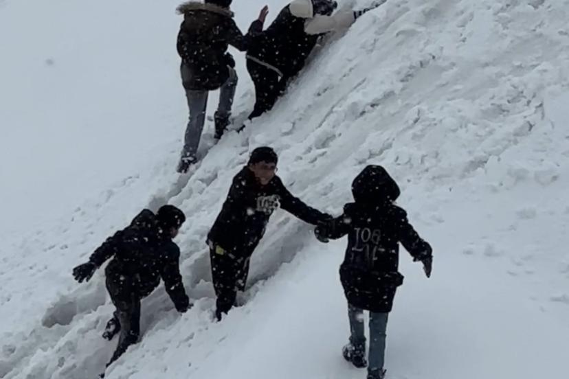İlçe merkezinde öğle saatlerinde başlayan ve kısa sürede etkisini artıran kar yağışı, hayatı olumsuz etkilese de çocukların eğlencesi oldu. Tatilin tadını çıkarmak isteyen bir grup çocuk, mahalle yakınlarındaki karlı yamaçlara çıkarak kendi imkanlarıyla oluşturdukları parkurda doyasıya eğlendi.