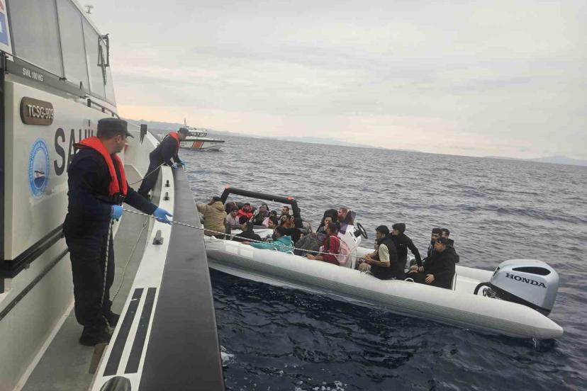 Aydın’ın Didim ilçesi açıklarında Yunanistan tarafından geri itilen 9’u çocuk 36 düzensiz göçmen kurtarıldı.