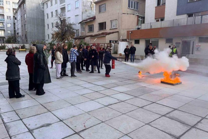 Eğitim, tatbikat ile birlikte gerçekleştirildi. Gençlik ve Spor Bakanlığı Kredi ve Yurtlar Genel Müdürlüğüne (KYGM) bağlı Mükrime Hatun Yurdu personeline, muhtemel acil durumlarda ne yapmaları gerektiği uygulamalı olarak gösterildi. Yangın söndürme cihazının doğru kullanım şeklini de öğrenen personelin farkındalık ve müdahale becerilerinin artırılması amaçlandı.