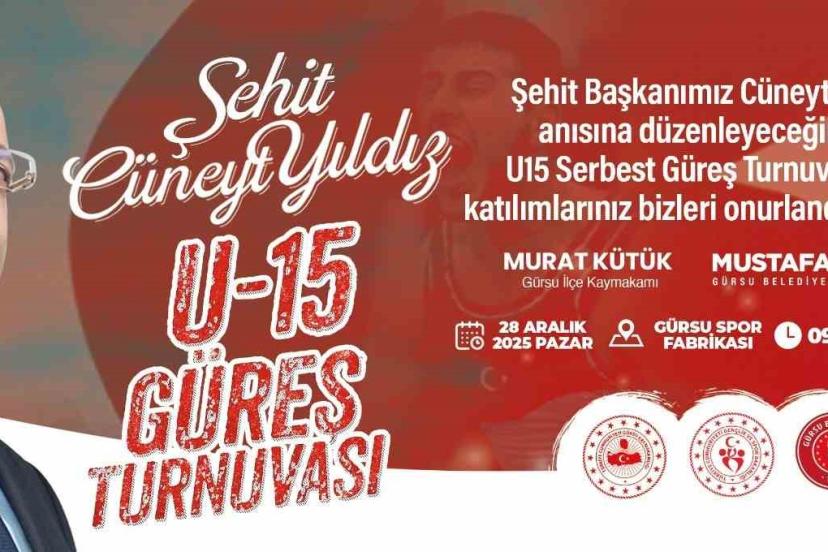 Şehit Cüneyt Yıldız U-15 Güreş Turnuvası, ülke genelinden 17 güreş takımını bir araya getirecek. Gürsu Spor Fabrikası’nın ev sahipliğini yapacağı etkinlikte 400’e yakın güreş sporcusu gün boyu müsabakalara katılacak. Dereceye girenlerin ödüllendirileceği Güreş Turnuvası’nda Gürsu’nun Şehit Başkanı Cüneyt Yıldız anılacak.